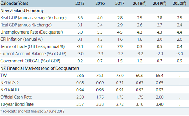 Chinese demand for New Zealand exports continues to hold up, but growth is expected to slow. The ECB remains cautious, but has signalled the unwinding of QE. The Australian housing market is navigating some headwinds and this will likely dampen domestic demand. But other drivers are expected to keep the economy ticking along.