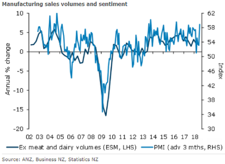 Stripping out meat and dairy product manufacturing (which often throw the figures around), 'core' sales volumes rose 0.6 percent q/q with stocks of finished goods up 2.1 percent q/q. It is core manufacturing that is most relevant for forming views on quarterly GDP growth.