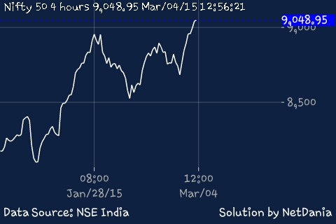 - Nifty, the benchmark stock index cheered the move and swiftly trading above 9000 level. The index traded as high as 9119 but gave up parts of the gain due to profit booking at this record level.