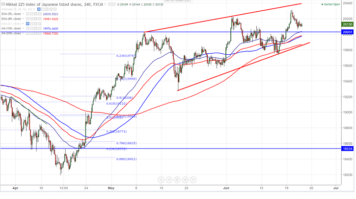 - On the lower side, near term support is around 20080 (4 Hour Kijun-sen) and any break below will drag the index down till 19971 (100- 4HMA)/19850 (200- 4HMA)/19740 (Jun 15th 2017 low).