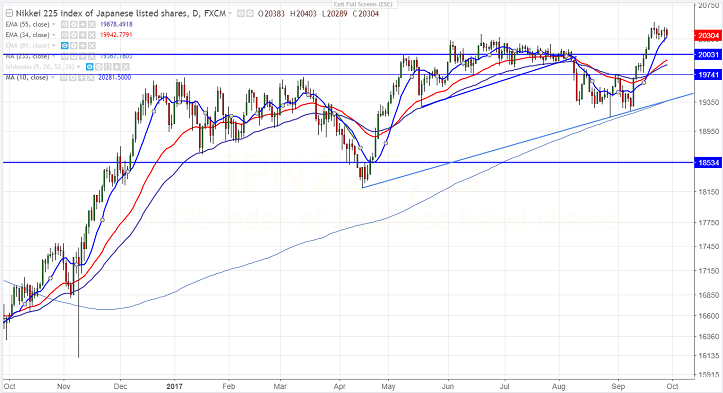 - Nikkei is consolidating in narrow range between 201497 and 20234 for the past five trading session. The index is facing strong support at 20200 and any break below confirms minor bearishness . Nikkei has formed a temporary top around 20497 and is currently trading around 20294 0.41% lower.