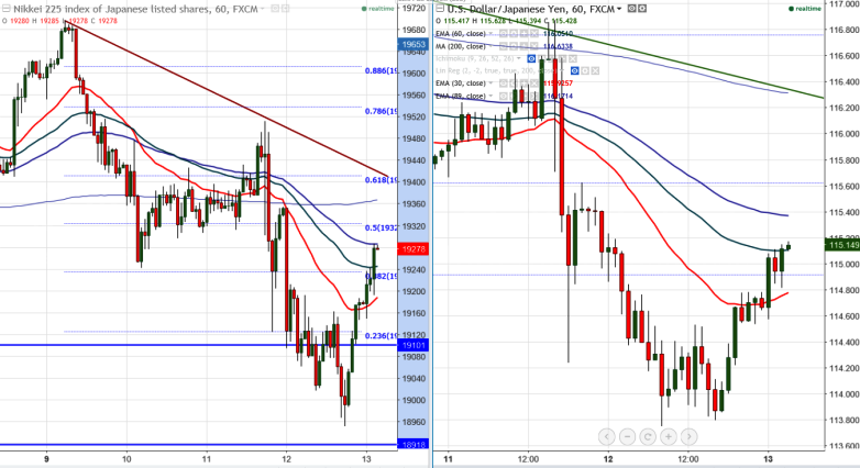 Nikkei225 forms temporary bottom at 18953 and started to jump from that level.The slight decline in yen has made index to jump till 19288. It is currently trading around 19283 0.55% higher.