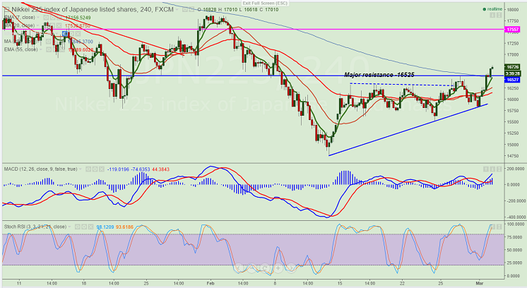 - The index has broken major resistance 16525 and jumped till 16725 at the time of writing. It is currently trading around 16721.