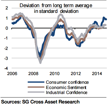 "The factors behind an improvement in consumer confidence, lower fuel prices, improvement in the labour market, have continued as they were, and for that reason the number will remain unchanged", says Societe Generale.