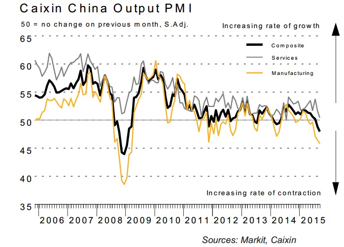 Data keep on suggesting that China's slowdown if far from over. After Monday's earnings showed China's industrial profits contracted by -8.8%, today's PMI report suggests such contraction is likely to follow third quarter.