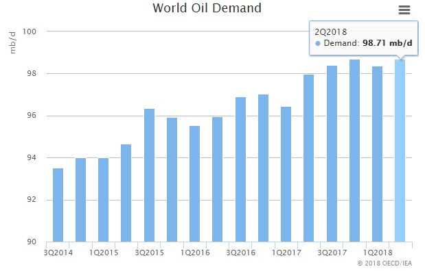 - IEA expects demand to reach 100.2 million barrels per day in the fourth quarter of 2018.