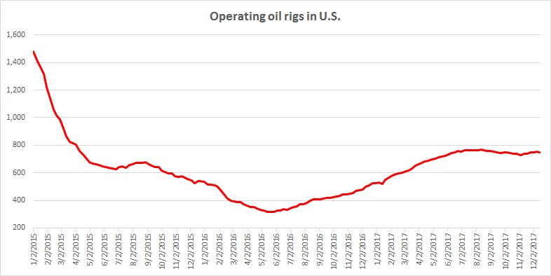 - U.S. oil rig count: The United States has already proved to be a major influencing factor in the global oil market as production reached a record high of 9.78 million barrels per day. To keep a tab on U.S. oil supplies, one needs to keep oneself updated on the numbers of oil rigs operating in the United States. As of latest report, the numbers of operating rigs have declined to 747. The numbers of operating rigs have increased more than 140 percent since bottoming in May last year.