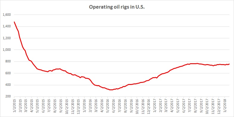 - U.S. oil rig count: The United States is continuing to see a surge in production. According to the latest report, the production declined to 9.88 million barrels per day. Despite fewer rigs operating compared to 2014/15, the production efficiency has pushed the overall production higher. As of latest report, the numbers of operating rigs rose from 747 to 759. The numbers of operating rigs have increased more than 150 percent since bottoming in May last year.