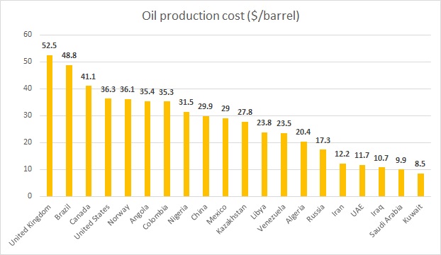 In commodities space, there is a saying that lower price itself is a cure for the lower price. What it basically means is that if the price drops to a point which doesn’t incentivize producers to keep mining or pumping, supply would shrinkage automatically and would ultimately balance the market. However, that hasn’t happened in the oil market. Despite a decline of 60-70 percent since 2014, the market still remains well supplied both in the physical market and the futures market. A forced supply shrinkage by OPEC and participating non-OPEC producers of 1.76 million barrels per day has so far failed to curb supplies. And the major reason for that has been the reduction in production cost, thanks to improvement in technologies. In this article, we take a look at the production costs of major oil producing countries based on data from Rystad Energy. The following table not only compared production costs but divide it into two main categories, capital expenditure, and operational expenditure,