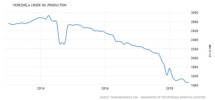 Due to political unrest amid an economic crisis, the production has significantly gone down in Venezuela, over the course of the past couple of years and the rout is far from over. Back in 2014, the country was producing around 2.9 million barrels of crude oil per day, and at the beginning of 2016, Venezuela was producing around 2.6 million. But over the past two years, the production has declined by 50 percent with production declining to just around 1.3 million barrels per day in September this year.