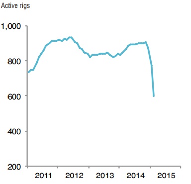 - Number of active rigs has fallen sharply from above 1500 to 922, just within a few months. Texas which is heart center of crude oil production saw falls in rig count by 29% in February from January level.