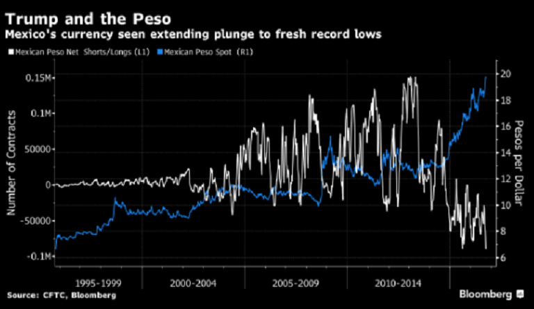 Net short positions on the peso jumped 37 percent in the week ending Sept. 20 and are now the highest in more than 20 years of data, according to the Washington-based Commodity Futures Trading Commission. One-month implied volatility, a measure of the cost to protect against price swings, rose to 19 percent Monday, the highest in the world, Bloomberg reported.
