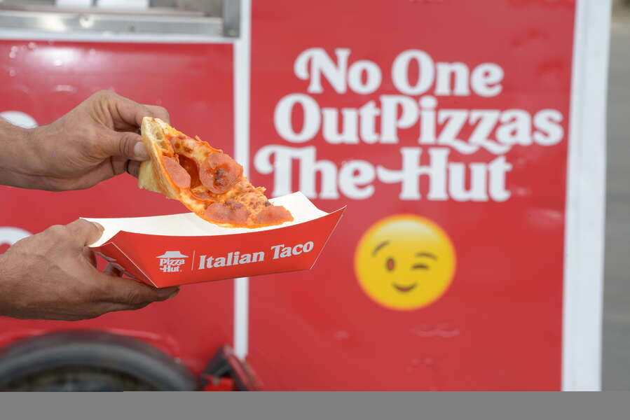 They added that the Italian Taco has been here and will be here forever." Their tagline: "No one out pizzas the hut."