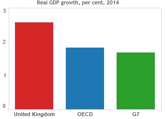 - As per latest data showed in the chart, UK remains the strongest growing nation among the G7 counterparts. UK economy grew 2.7% whereas the average growth in G7 economies and OECD remain below 2%.