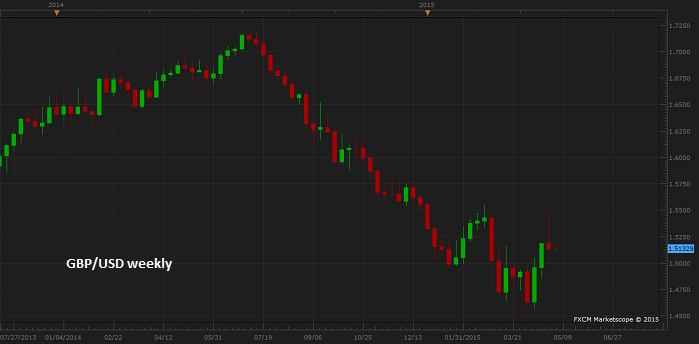 GBP/USD has produced a bearish inverted hammer candle in weekly chart, which could be a pre cursor to further fall in Pound. Pound is currently trading at 1.513 against dollar, with 1.55 as hammer high.