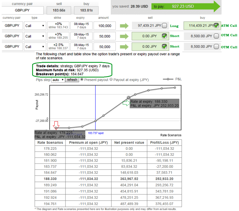 GBPJPY is also moving in the same direction on sensitive political outcome. We therefore recommend "call ratio spread" as the pair is likely to remain either sideways or slightly bullish in our view. Buy a Call and sell more Calls at a higher strike price. Buying call spread in addition to selling more necked call options constitutes this hedging position. The portion should ideally be constructed in the ratio of 1:2 or 1:3 with short time for expiry is preferred.
