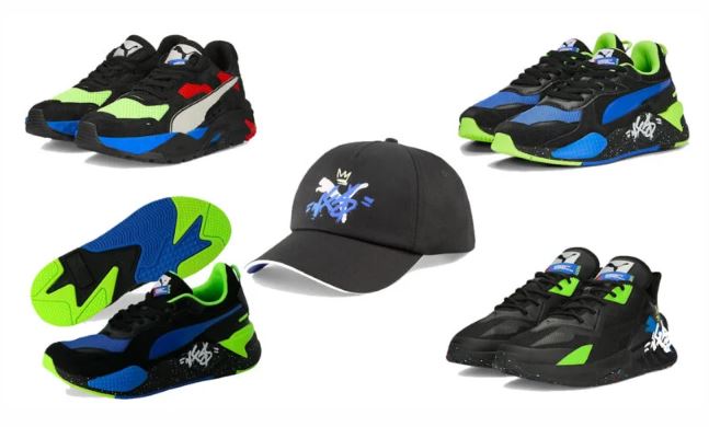 Fans can choose from a choice of four styles of footwear, encompassing special NFS colorway editions of the PUMA MACO SL, RS-X, RS-TRK, and RS-X JR sneaker models. To complete the look a special edition baseball cap is also available.