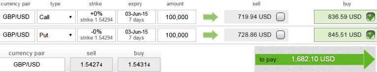 Hence, taking into account the need to calculate the present value of the cash component using a suitable risk-free interest rate, we have calculated and illustrated the Put call parity of GBP/USD straddle: