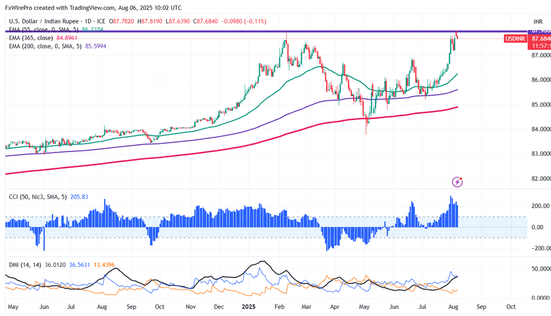 USDINR pared some of its gains after RBI kepts its rates unchanged. It hits an intraday low of 87.58 and is currently trading around 87.73