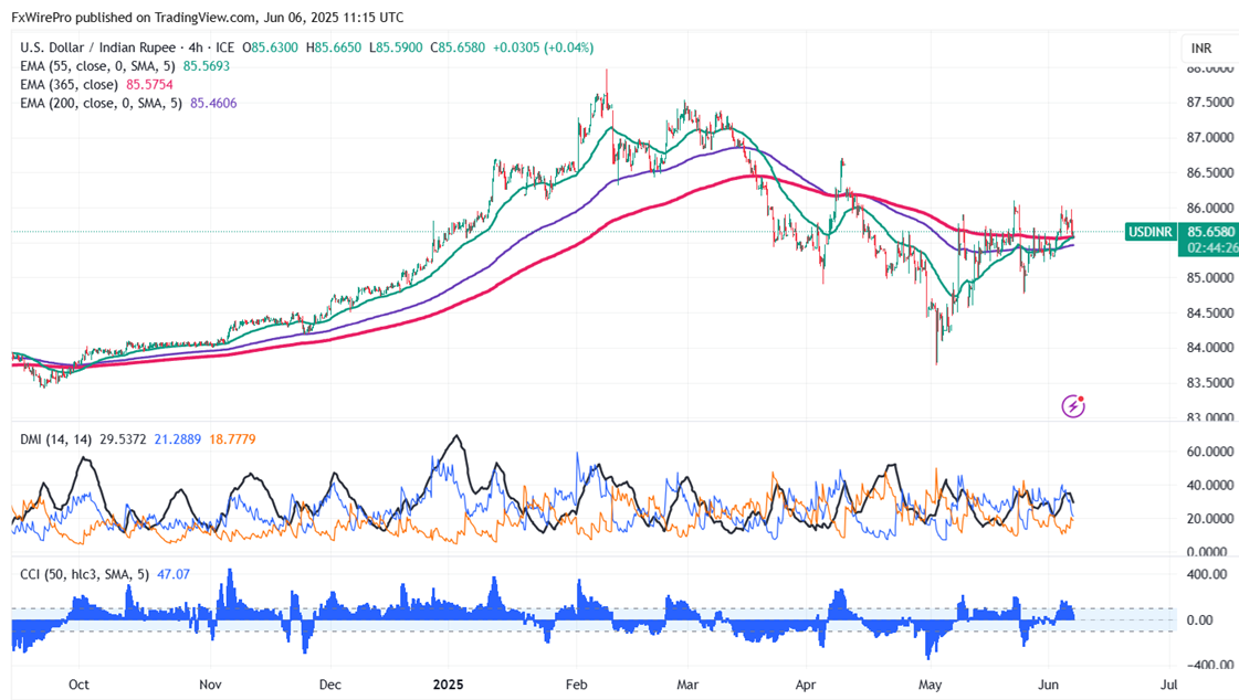 USDINR pared some of its gains despite RBI 50 bpbs. It hits an intraday high of 85.98 and is currently trading around 85.65.