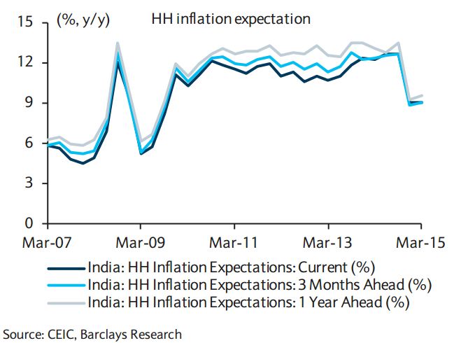"Accordingly, we see a case for further easing in the coming months by the RBI. The monsoon outcome will be largely clear by September and the initial impact of a potential Fed hike – if indeed takes place in mid-September – on INR assets would be visible before the RBI’s end-September policy meeting. We look to the RBI’s commentary and guidance next week to firm our views in this regard. However, given the ongoing soft inflation backdrop, the risk of a 25bp repo rate cut by the RBI in H2 15 is rising, in our view."