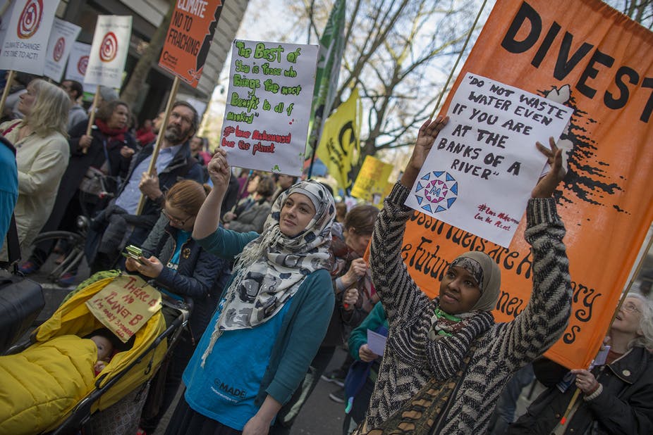 In 2018, Muslims in London organised a “Green Iftaar” – the evening meal after sunset that breaks the daily fast during Ramadan – without plastic, food waste or meat. Muslims alongside groups of all faiths and none recently attended the Extinction Rebellion demonstrations in London, and in April, Britain’s first eco-Mosque opened in Cambridge, aiming for no carbon emissions from the site and rainwater harvesting.