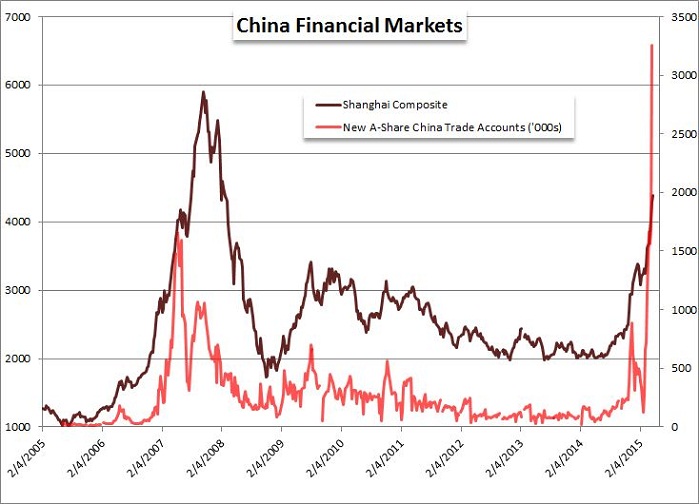 - Last week, Chinese brokers opened new 3.2 million A shares account, highest on record.