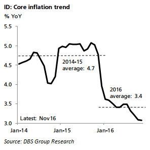 Headline inflation accelerated to 3.6 percent y/y in November, up from 3.3 percent in the previous month. The upward trend in headline inflation is likely to persist into 2017, with current projection penciling in average inflation at 4.5 percent next year, DBS reported.