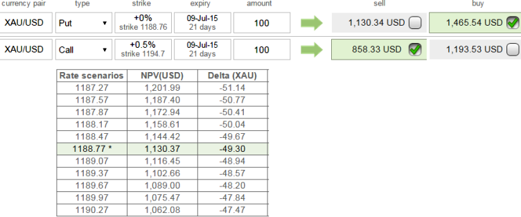 The strike price at which the premium received, should contribute more than 50% of the cost of premium of the protective put (see diagram i.e US$ 858.33).