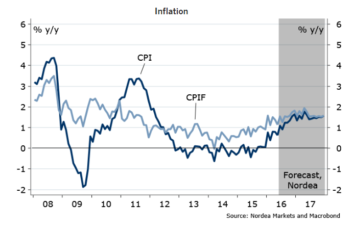 "We do not expect the Riksbank to raise rates over the forecast horizon or household borrowing costs to rise markedly for other reasons. Nor is further regulation, such as a debt ceiling or a phase-out of interest relief, likely over the forecast horizon through December 2017," said Nordea Bank in a report.