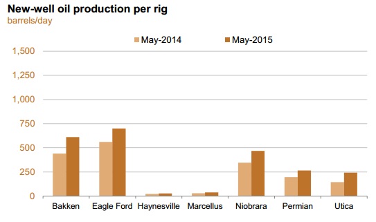 - As per latest estimate average crude production in US to fall only 57,000 barrels/day in May compared to more than 40% drop in producing rigs.