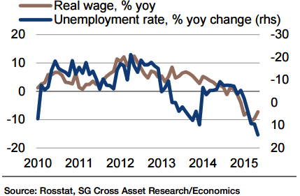 "In this respect, the frozen indexation of the public wage bill remains a key signal for other sectors to revise wages. In real terms, the outlook for wages (-6.0% yoy) will improve slightly as inflation slows", says Societe Generale.