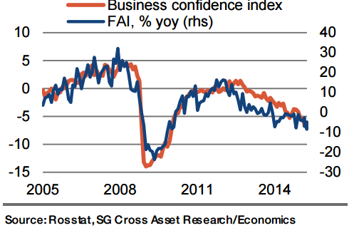 Local market-oriented enterprises prefer to translate their capex programs into ruble, thus the recent currency depreciation likely has impaired fixed asset investment.