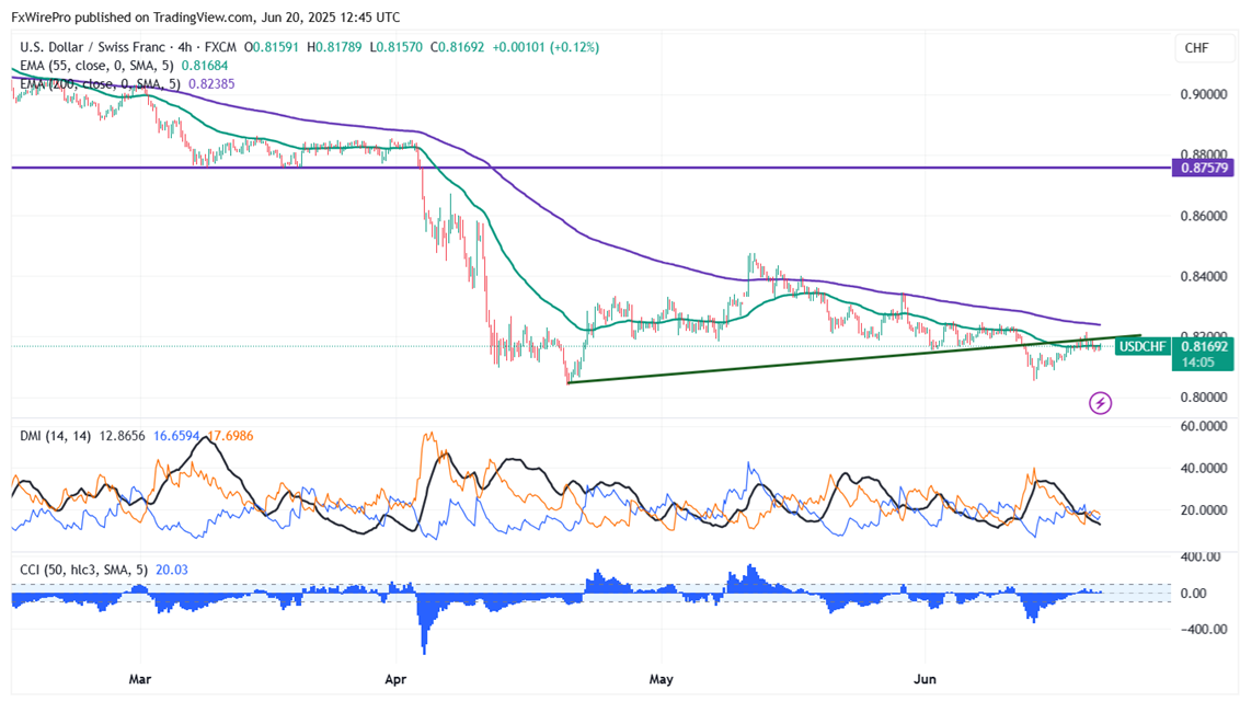 The pair is trading below the 55-EMA, 200 EMA and 365 EMA on the 4-hour chart indicates a bearish trend. The immediate resistance is at 0.8188 any break above targets 0.8250/0.8300.