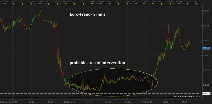 Further intervention from SNB is expected as Greek uncertainty persists in the market.