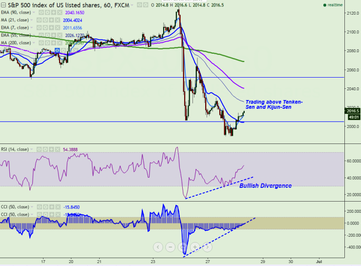 - The S&P500 is trading slightly well above 2010 (hourly Kijun-Sen) and a jump till 2026 (55 H EMA)/2040 (61.8% retracement of 2072 and 1989).