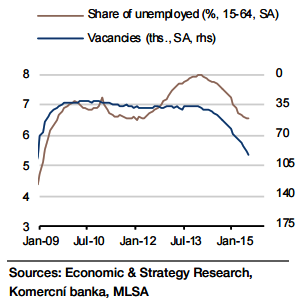 Czech's growing industrial output and flourishing construction creates more and more vacancies and thus contributes to the decline of unemployment. The seasonally adjusted share of unemployed should marginally decrease cutting the headline number to 6.2%.