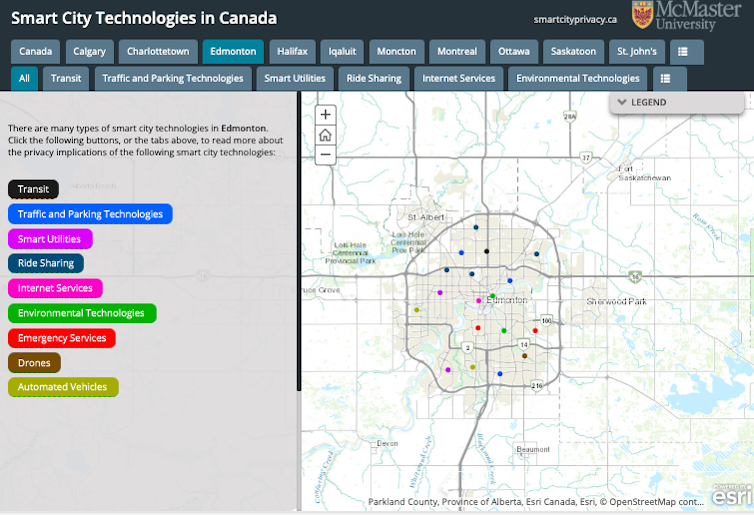 A screenshot of the Smart City map showing smart city technologies in Edmonton, AB.
