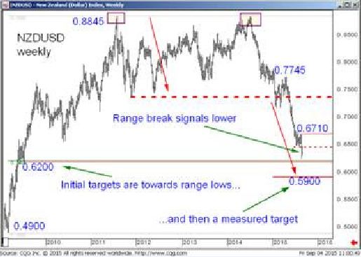 - Technically, our bearish view for NZDUSD was encouraged by the recent break below support in the 0.6470 area. We now expect an extension of the year-long falling trend towards our initial targets near 0.6200. Beyond there, we see room for further downside towards 0.5900, the target of a multi-year topping pattern.