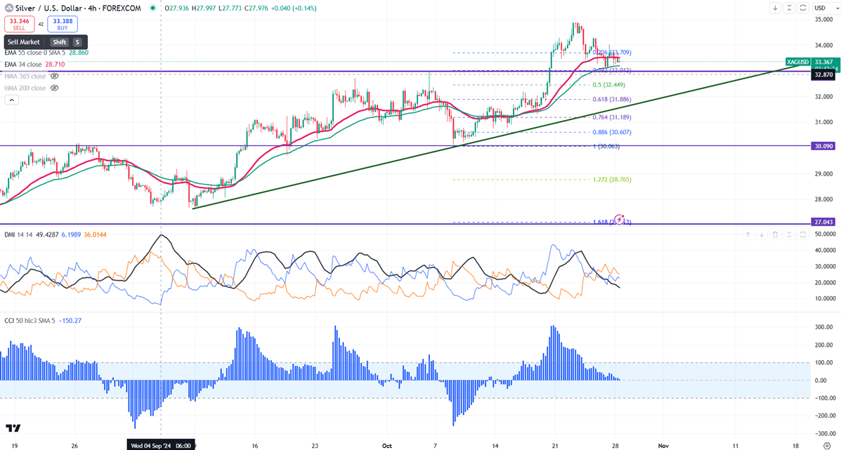 For trading, the major level to watch is $34.50. Silver is currently above key moving averages, with near-term support at $33. If it drops below this, it could target $32.70, $32.40, or $32. On the upside, immediate resistance is at $33.70, and breaking this could lead to targets of $34.50/$34.73, $35, or $36.