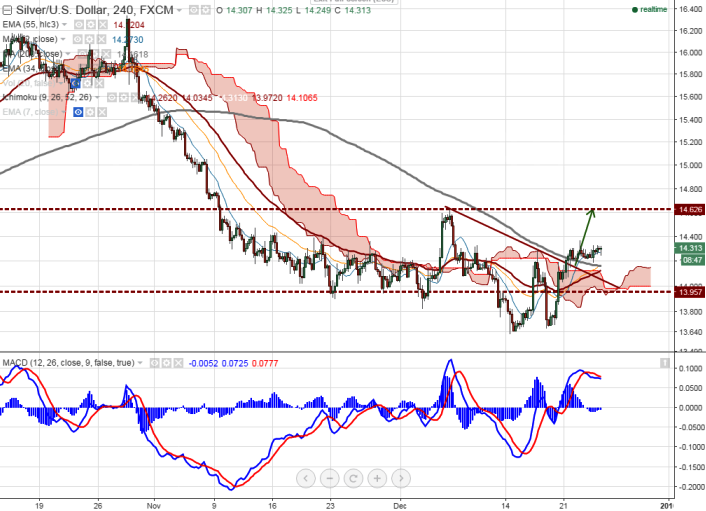 - Overall trend reversal only above $14.62 and break above $14.62 will take the commodity till $14.86/$15.18.