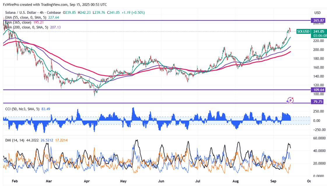 The SOL/USD was one of the best performers the previous week on positive developments. Near-term support is identified at $225, with a drop below this level potentially leading to targets of $200/$180/$140/$123/$117/$100. Immediate resistance is noted at around $250, where a breach could push prices up to $265, or even $300. It is good to buy on dips around $180, with a stop-loss set at $140 and a target price of $300.
