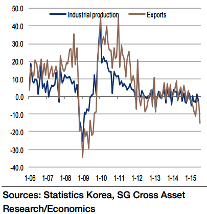 "Industrial production likely fell for a second consecutive month in August given a significant decline in exports. However, a sizeable decline in non-electronics exports (including autos, metals and chemicals) leads to expect a considerable fall in industrial production, even taking into account seasonal factors (summer holidays) and the relative strength of the electronics sector", says Societe Generale.