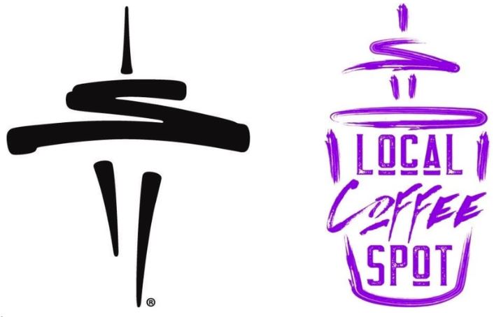 The lawsuit suggests that Local Coffee Spot's purple and white branding, which features an abstract, Space Needle-like steam rising from a coffee cup, is too close to the Space Needle's own trademarked abstract design.