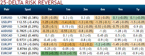 Please glance through the above nutshell showing the risk reversals and be informed that the recent shift hedging sentiments have again turned onto downside risks.