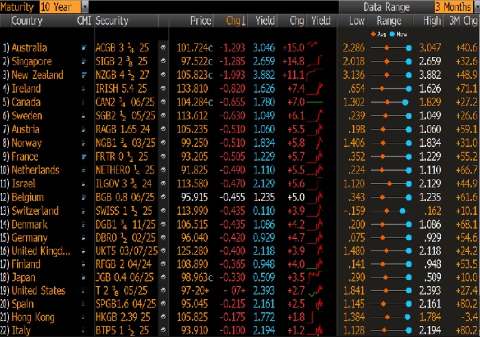 German bund, which is seen as benchmark in Europe, yields rose as high as 0.992% in 10 year segment, which stands as the highest level seen since last year. Yield has risen by almost 35 basis points in two days, which is highest move since 1998.