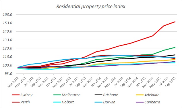 According to September report, Property prices are up 10.7% from a year ago in Australia, with Sydney accounting for biggest chunk of the rise (19.9%), followed by Melbourne (9.9%), Canberra (4%), Brisbane (3.8%), Adelaide (3.5%) and Hobart (1.7%). Perth and Darwin are only two cities, where prices have declined by -3.3% and -2% respectively, from a year ago.