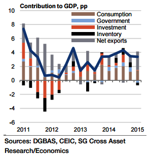 After an exceptional contribution to GDP growth in Q1 (+2.6pp), Taiwan net exports are likely to have declined in Q2 and dragged growth down sharply by 3.5pp. Owning to soft demand for electronics, real merchandise export growth fell acutely to -2.3% yoy in Q2 from 4.5% yoy in Q1.