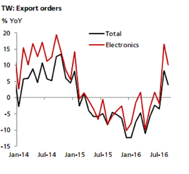 The sales outlook of iPhone 7 could be better than expected due to the recall of the new smartphone product at Samsung. This should indirectly benefit Apple’s Taiwanese suppliers. Accordingly, Taiwan’s GDP growth is likely to improve more than expected in during the second half of 2016.