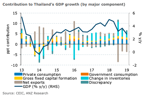 "Our full-year growth forecast for 2019 is 3.2 percent, which pencils in a sub-3 percent growth in H1 and a pick-up in H2, helped by more favourable base effects and is premised on government formation taking place without material delays and a pick-up in infrastructure spending. The National Economic and Social Development Council (NESDC) is forecasting growth of 3.3-3.8 percent in 2019, down from an earlier projection of 3.5-4.5 percent," the report further commented.